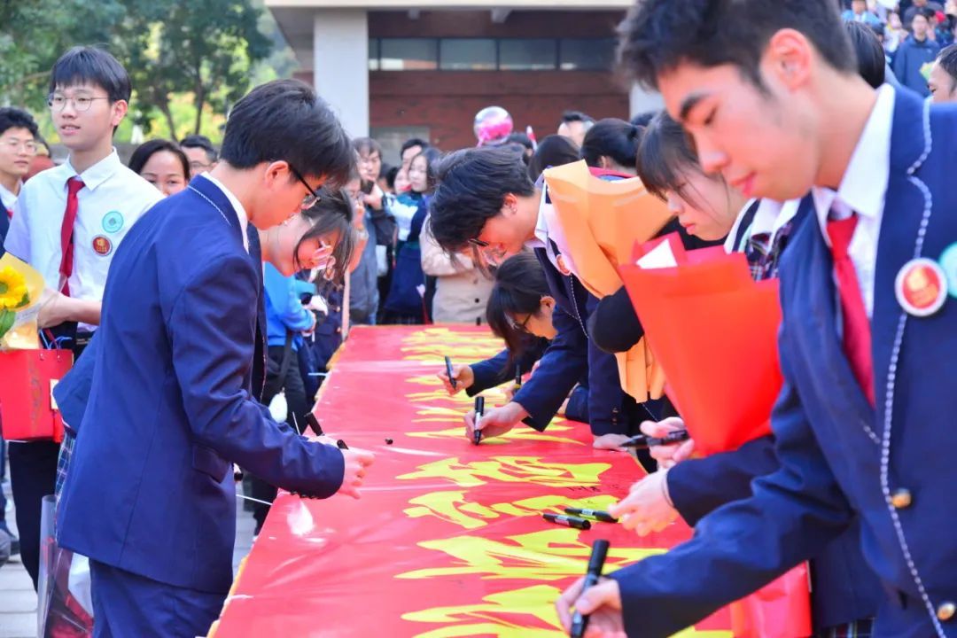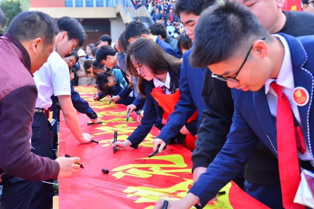 高三学子们在励志横幅上